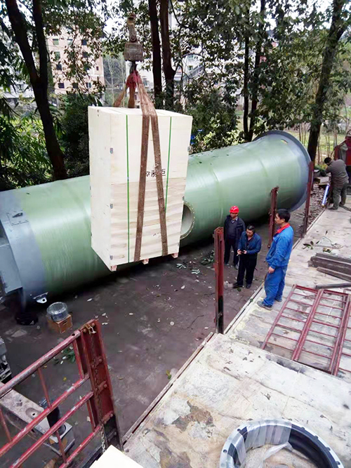 我司優(yōu)質(zhì)大型一體化預(yù)制泵站裝車發(fā)貨實地吊裝現(xiàn)場,應(yīng)用于雨污水收集提升環(huán)保建設(shè)!