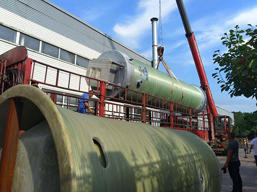 我司應(yīng)用達(dá)州雨污水收集環(huán)保工程玻璃鋼一體化預(yù)制泵站裝車加急出貨中!