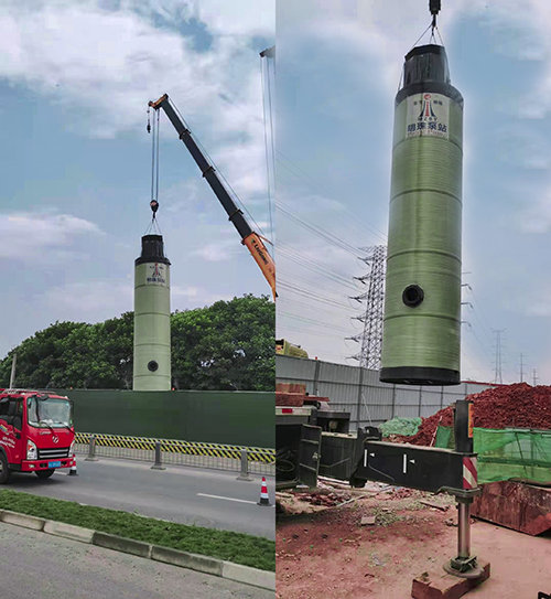 我司玻璃鋼一體化預(yù)制泵站雨污水收集提升成都市政工程吊裝安裝施工現(xiàn)場!